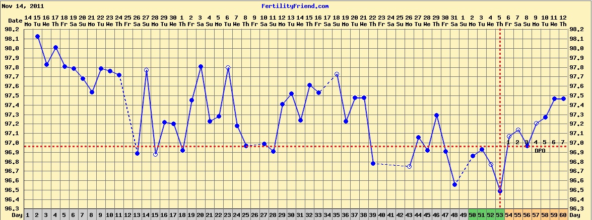 The good news is, I’ve been charting my cycles via taking my temperature, and, despite wacky post-miscarriage temperatures, I am pretty sure that I finally ovulated a week ago. Not that we could do anything about it, but ovulating last week means that my body is hopefully finally regulating itself, and my period *should* be here in less than a week now.