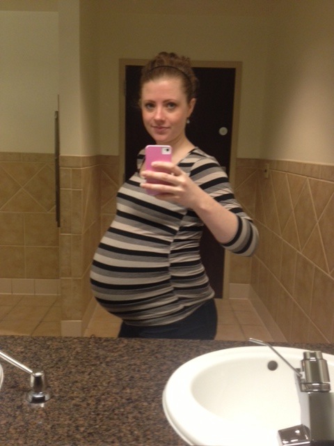 Okay, here I am in all my beached whale glory. I put on 4 lbs in one week, which doesn’t seem possible since I’m eating the same as I was. Maybe I’m retaining more water now or something. I’m up to 29.4 lbs gained now.