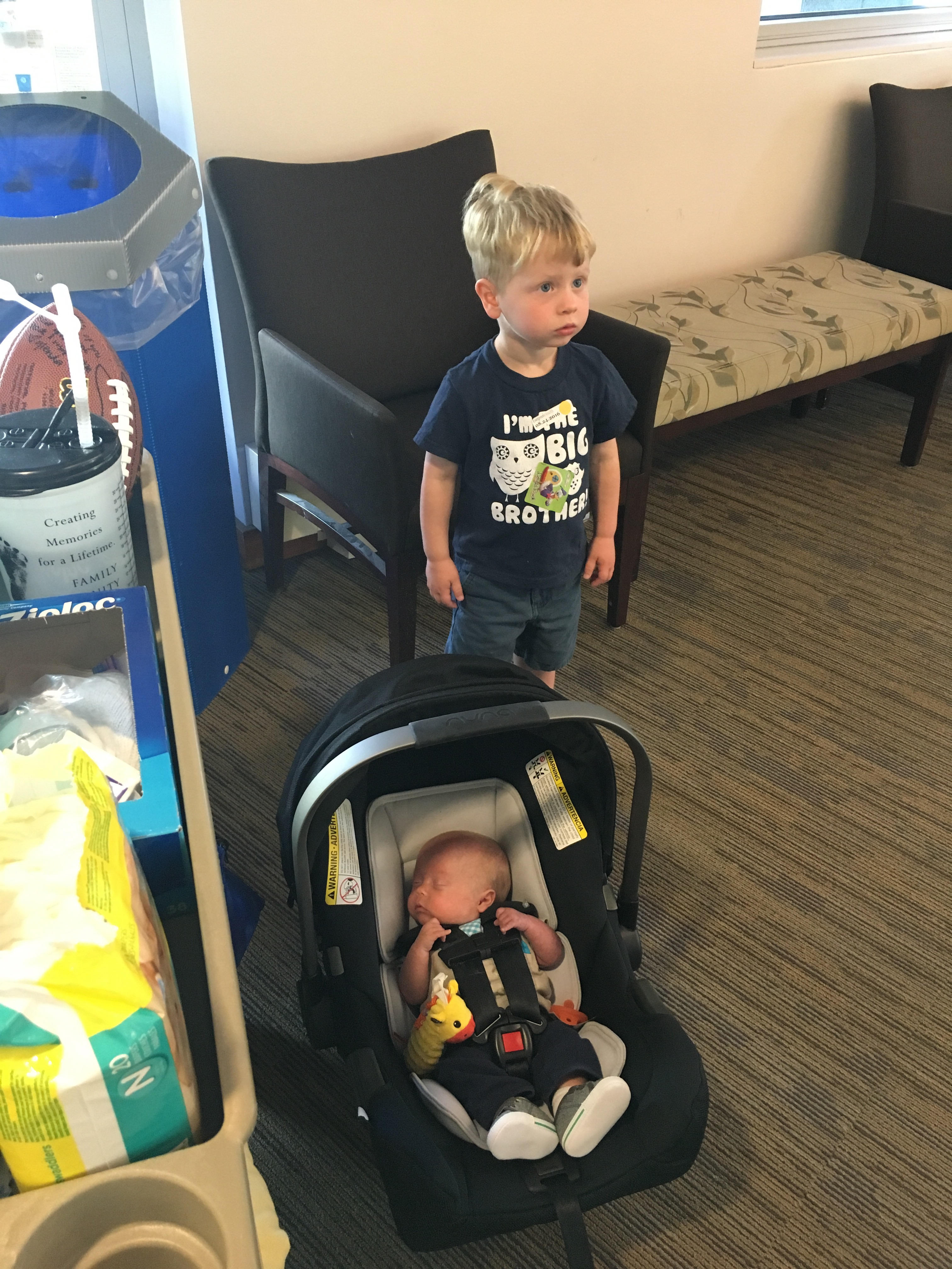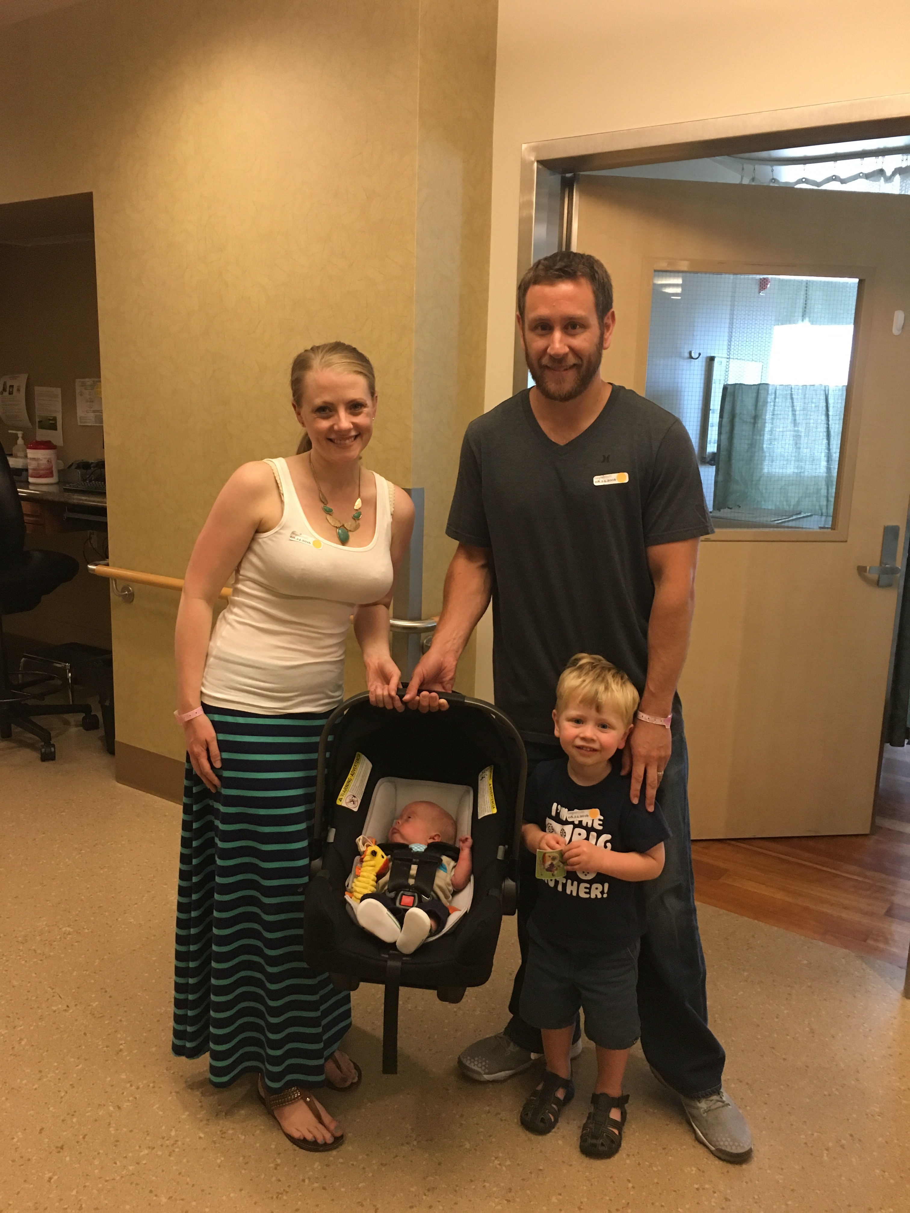 D came home and then I took him to work and T to daycare, and then I came back home to clean and get a few other things wrapped up. I spent the afternoon at the hospital, talked to the nurses and doctors (there were many tears involved), took some pictures, signed some papers, and then I went to go pick up D from work, and T from daycare (after nap), so we could all go back to the hospital and take E home as a family. It was an incredibly emotional experience.