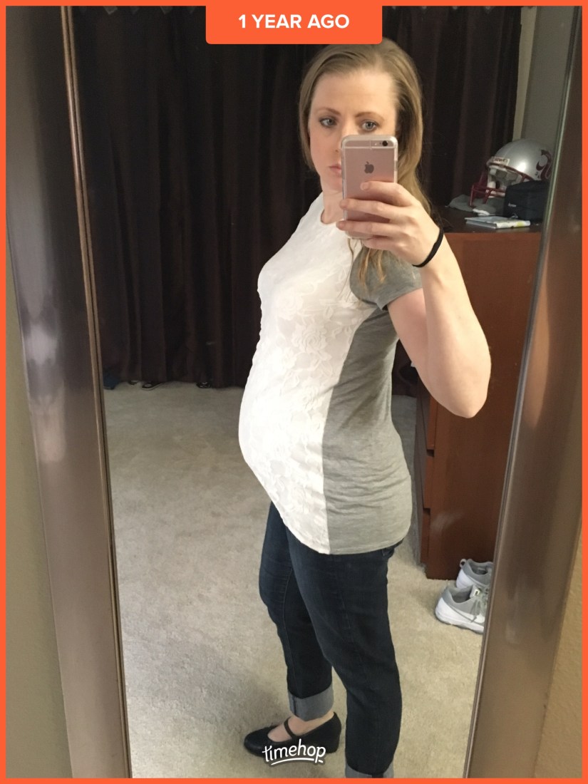 I have this app on my phone called Timehop. Most of the time I love it. It shows you pictures you took or things you posted to social media this time last year and every year it has access to. It’s been fun to revisit baby photos of Theo or to see some of the ridiculous thoughts that occupied my mind eight years ago that I somehow thought all of Facebook needed to know. But you know what’s been popping up lately from this time last year? Pregnancy photos. Casual, breezy selfies I snapped in the bathroom at work, or in front of the mirror in our bedroom. And while I rarely take selfies normally, I’ve always felt an uncharacteristic sense of body confidence while pregnant, and found myself admiring and snapping photos of my growing bump quite often.