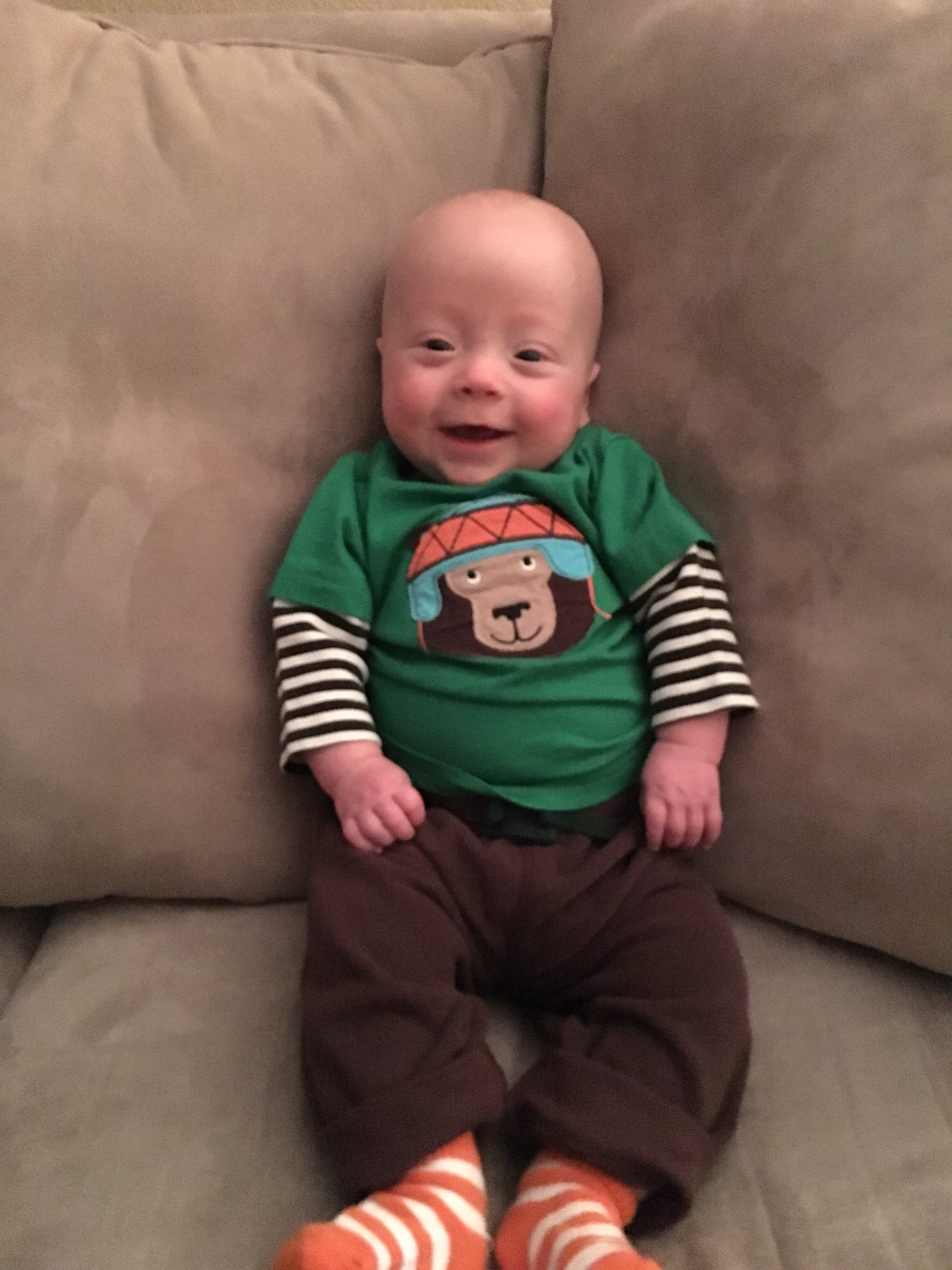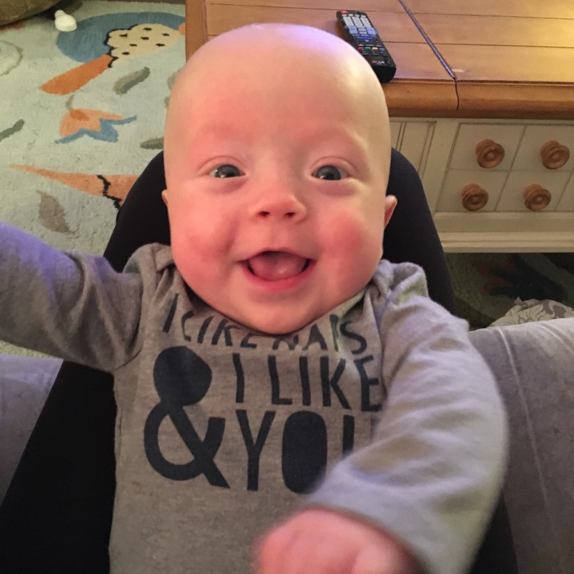 Dislikes: His inhalers, the Nose Frida and being away from mom. Separation anxiety has officially arrived. I used to be able to drop him off at daycare without much fuss. He’s so intent on exploring and getting into things that he’d crawl over and empty the toy bin as soon as I set him down and hardly even noticed I left. Recently, though, he cries and grabs my legs if I try to leave the room. Breaks my heart.