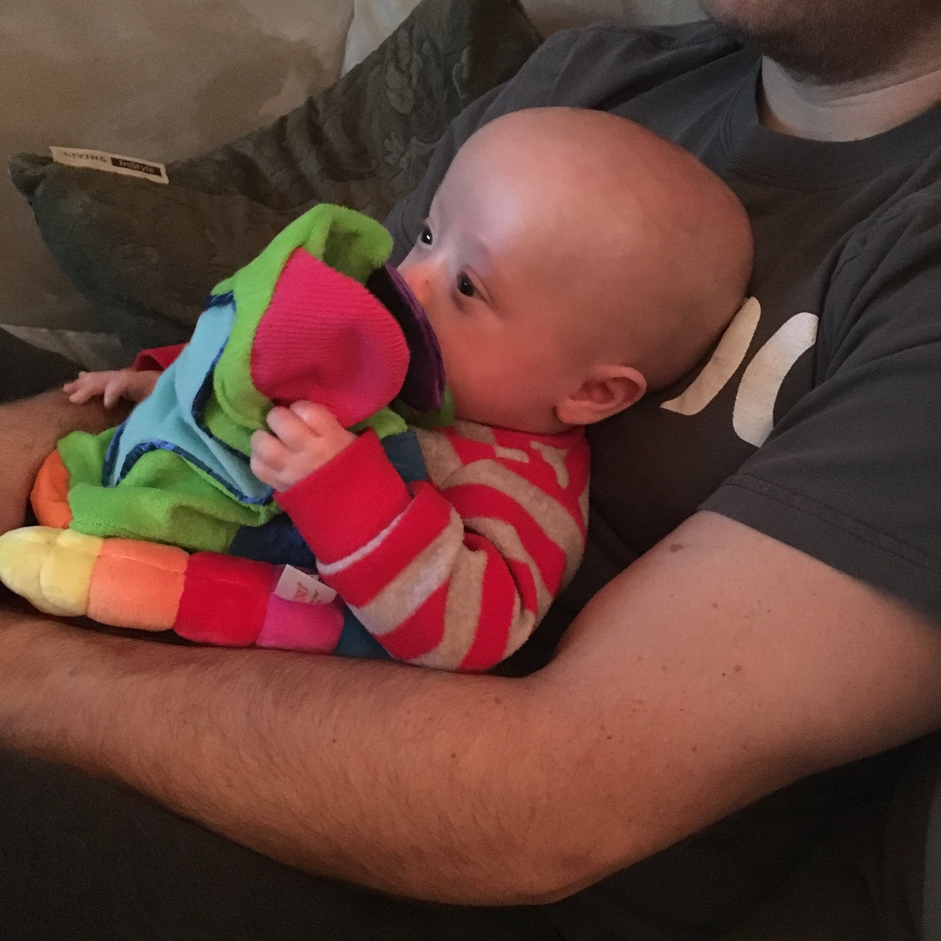 Mama: Still obsessing over milk supply, though the Domperidone has helped a LOT. I’m still not up to full supply, but I’m usually only 2-3 oz short of what I need to send with him to daycare each day, and there have been a handful of days where I actually pumped enough! I started on the lowest recommended dose of 60 mg per day, though, and have recently increased to 70. I can go as high as 160, I believe, if needed. I’m so close to making enough, that I’m hesitant to increase much more since I’ll need to wean slowly. As of now I still have enough freezer supply to make up the difference and I think E is pretty close to dropping a bottle at daycare now that he’s eating more solids.
