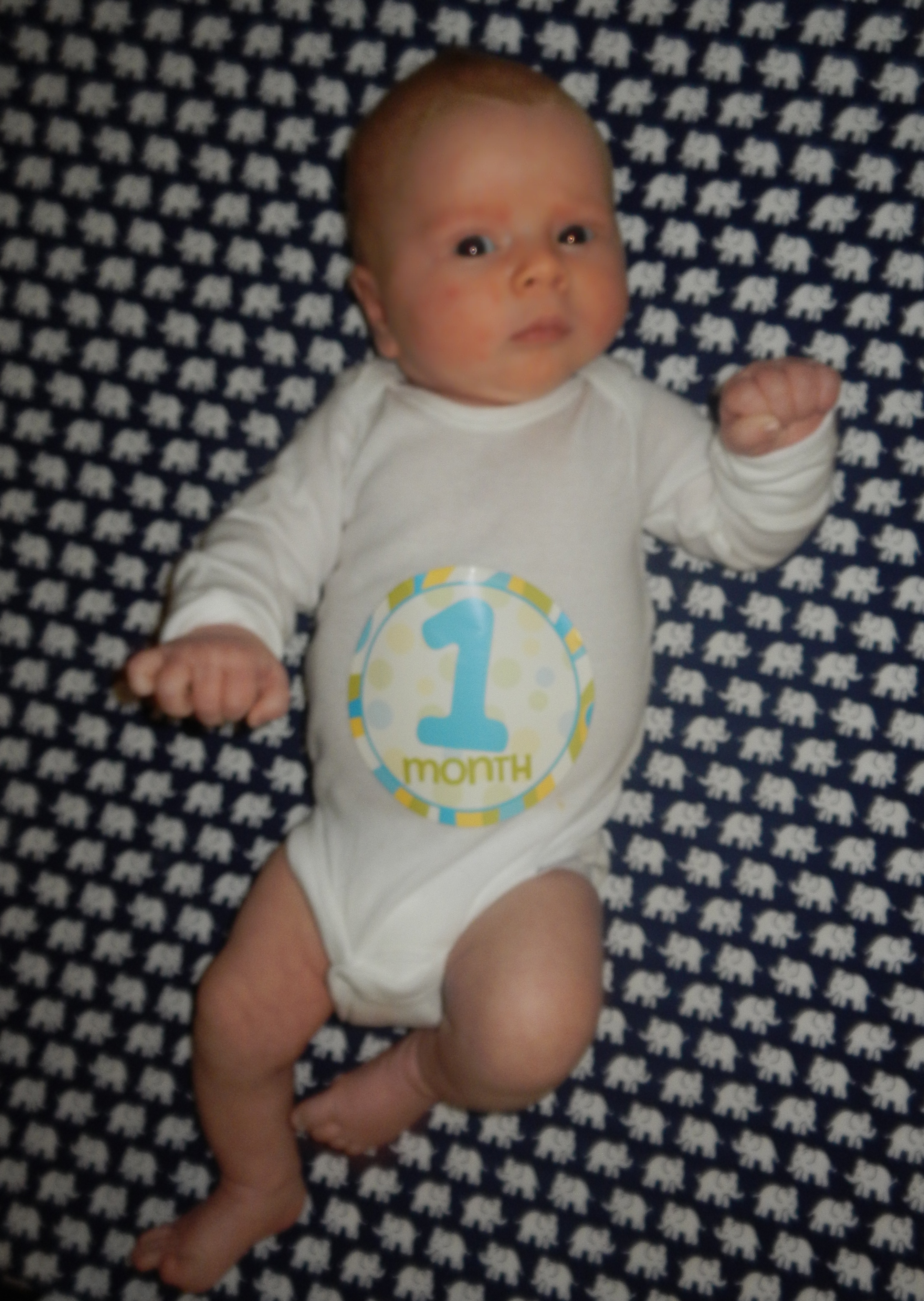 Sleeping: He actually gave us two nights in a row of sleeping through the night a couple weeks ago! And then just when I got my hopes up that this was going to be the new normal, he totally regressed. He’s now back to waking up every 3-4 hours, and we’re having some issues with the swaddle. He fusses and can’t fall asleep unless his arms are immobilized, yet he wakes himself (and consequently, us) up a few hours later, grunting and busting his arms out. It’s sort of a lose-lose situation. If I don’t swaddle him, he can’t fall asleep. If I swaddle him, he won’t stay asleep. I did some searching online and found a few recommendations for a product called the Magic Sleepsuit. It kind of reminds me of the snowsuit Randy wears in A Christmas Story. Supposedly it partially immobilizes their arms so they don’t flail around so much or wake themselves up with their reflexes. It’s $40, though, which would be worth it if it works (sleep is a glorious thing), but I’d be afraid of wasting my money if it didn’t help. I may check Craigslist, Ebay and consignment stores and see if I can find one used – less risk that way!