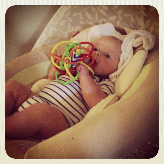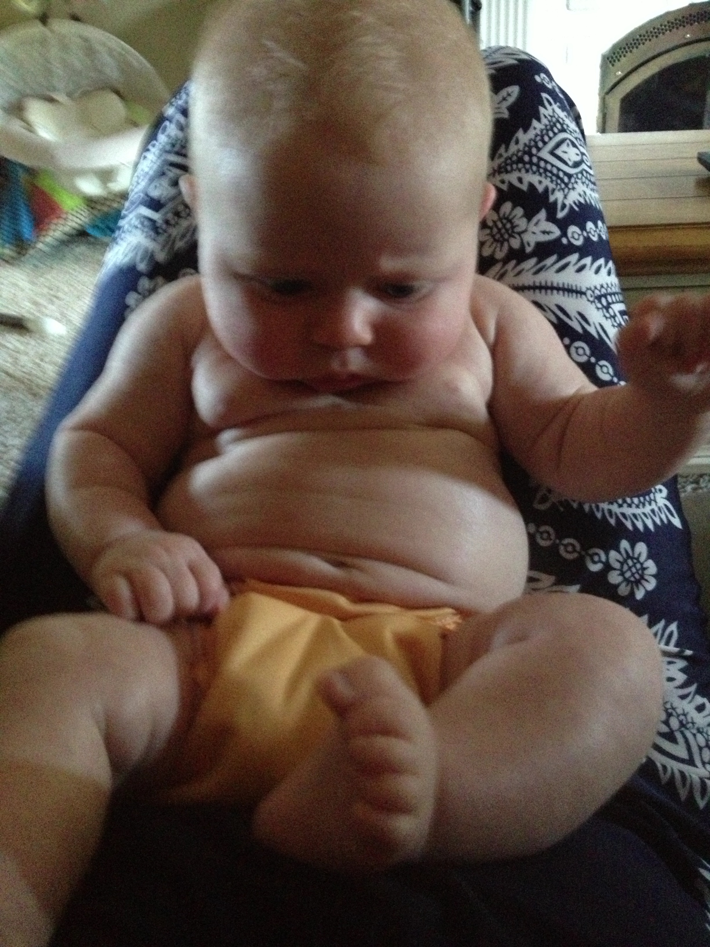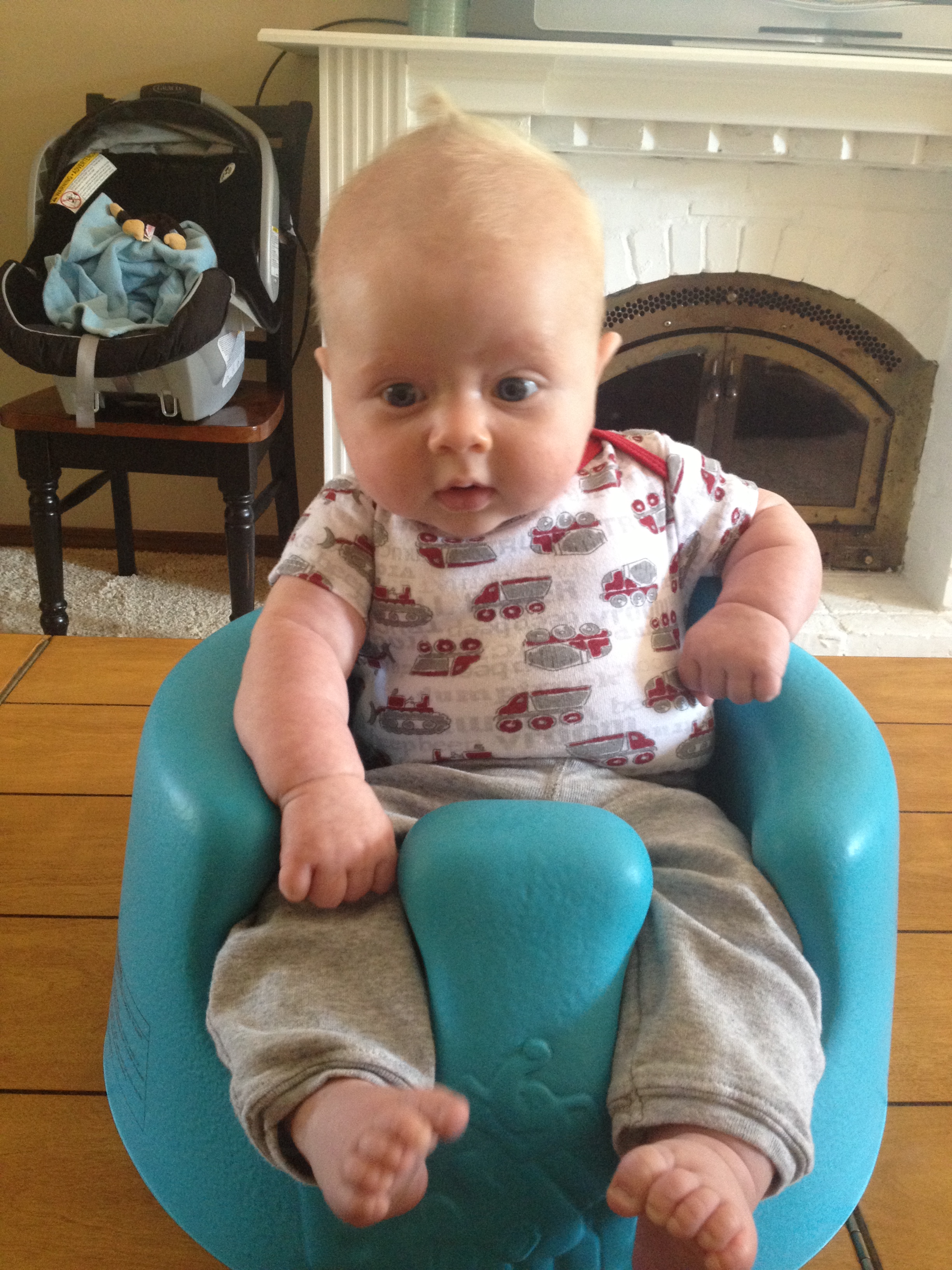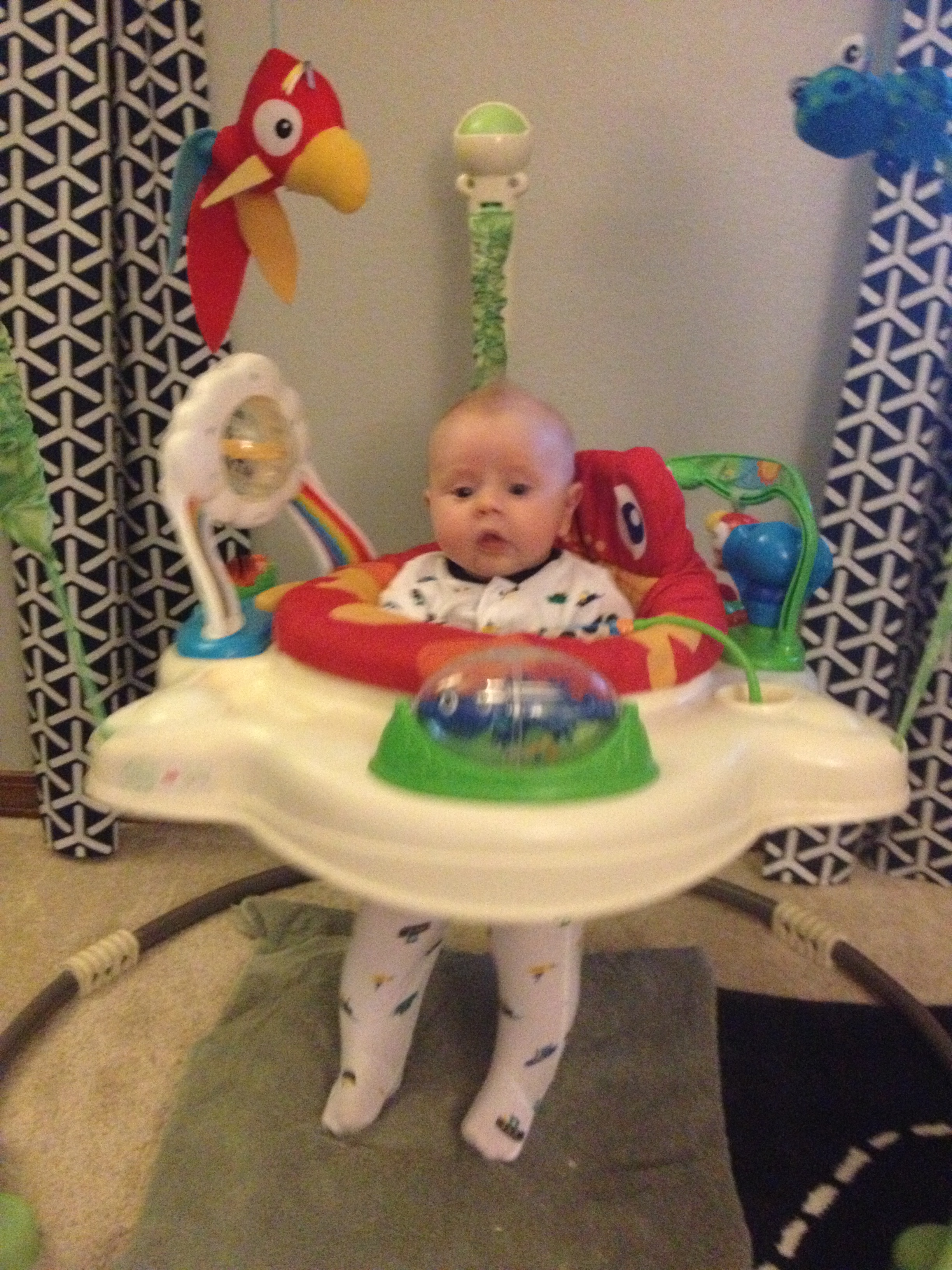 Personality: He is sooo much fun. Smiles all the time and just loves to look at everyone. He’s getting really interactive. If you smile, he’ll smile back. If you talk to him, he’ll babble back. Sometimes he’ll babble up at me while he’s breastfeeding, and it’s just the cutest thing. I tell him not to talk with his mouth full (never too early for manners!). Just the other day he scratched his head and it was the funniest. He’s been dealing with cradle cap and it must be itchy. I can’t explain it, but it’s just so cool to see little him do the most ordinary things. He gets more and more “human” every day!