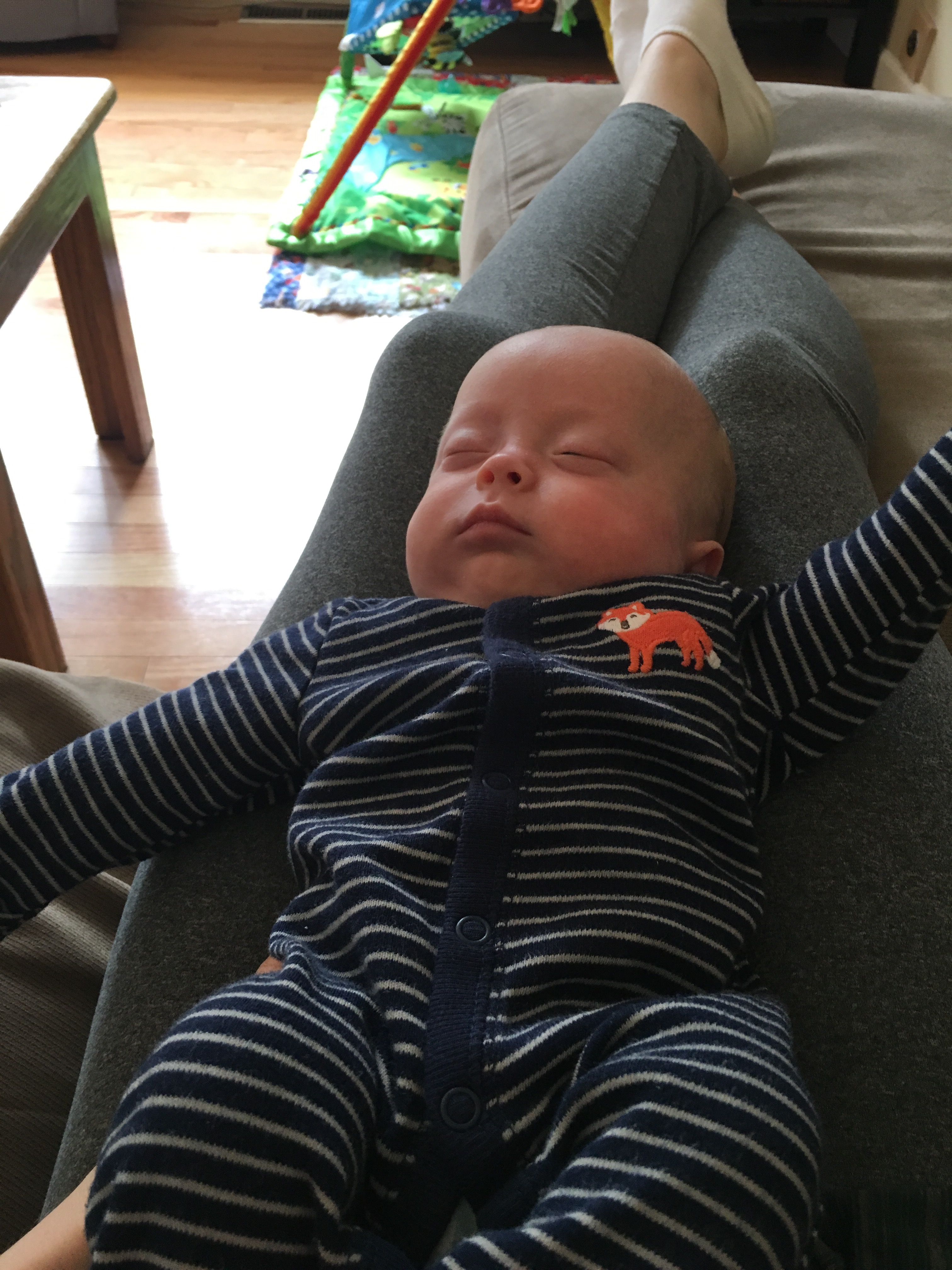 Mama: I’m still stressing over my milk supply, though I have noticed with his increased stretches of sleep at night, I’m able to nurse him in the morning and then still pump more than my usual amount afterward. Interestingly, my subsequent pumps throughout the day have been higher volume as well. I’m sure I’m making the same amount but just pumping what I would have been nursing overnight when he was waking multiple times. But if nothing else, it’s a nice morale booster to see the higher volume. Though I have heard sleep is good for your supply, so it could be that these longer stretches of sleep have allowed my body to recuperate some and produce more.