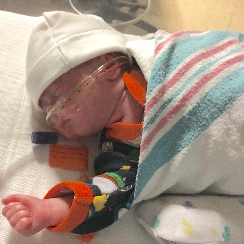 Unfortunately, his reflux seems to be bothering him quite a bit today. He was desatting a ton and he just sounds so uncomfortable when he breathes. This evening at one point he even sneezed and milk shot out his nose. It had been over an hour since his last feed so it was all his previous meal that was backed up all the way into his nose. It’s frustrating listening to him snort and grunt and not be able to help him.