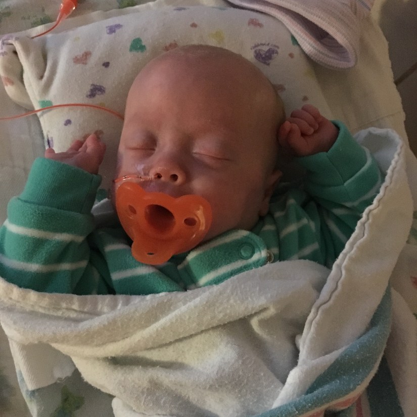 This morning, Dr. L came to visit and announced we have a new plan. Even though he’s nowhere close to the 80 percent feed volume we were aiming for in order to remove the NG tube, he decided to remove it now anyway and do a 48-hour trial of feeding on-demand. He thought maybe the strict three hours between feeds wasn’t giving him a chance to get hungry (for the record, I’ve been saying this all along!!), and the fact that he takes in near-full volumes some feeds and practically nothing others means he’s capable of taking a full feed but just might not be hungry sometimes. So the new plan is to nurse or bottle-feed whenever he actually acts hungry, regardless of how long it’s been since the last feed, but not to go any longer than four hours. This is basically what you’d do with a normal newborn anyway, and most newborns figure out how to eat what they need to grow, so we’re hoping he does the same. If after 48 hours he’s losing weight or not wetting enough diapers, they’ll put the feeding tube back, and we go back to our original plan of aiming for 80 percent orally and gavaging the rest.