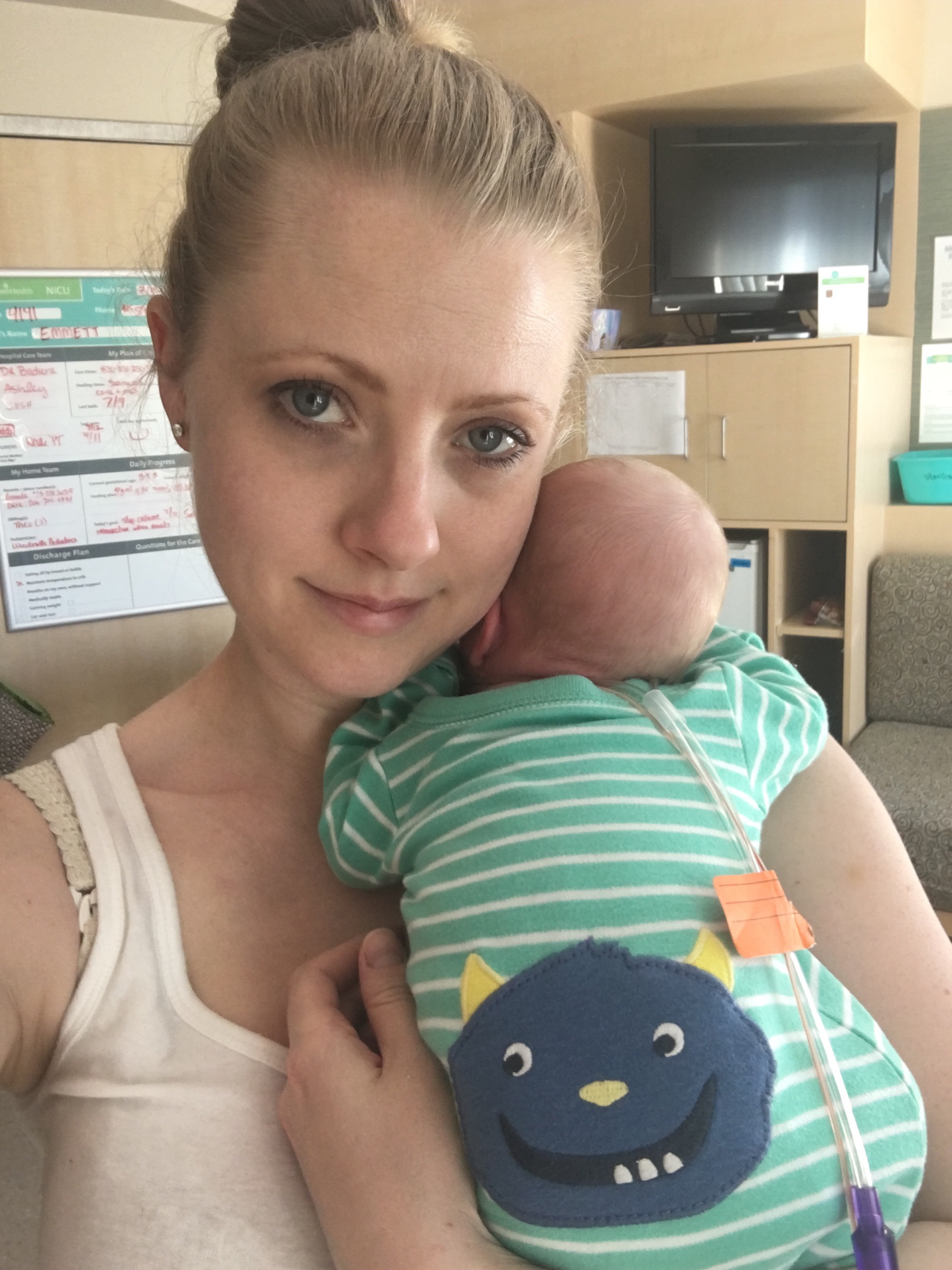Another highlight of my day? I officially have working boobs. I may have shed tears of joy over pumping a whole 1.5 ML of colostrum this morning. It’s not much, but it was enough to get into a syringe and we can start feeding tomorrow (he’s been on just IV fluids so far, and the doctor wanted to figure out what was happening with his metabolic acid levels before we attempted feeding). I’ve been pumping every 2-3 hours around the clock since he was born and was beginning to get pretty frustrated with my lack of anything to show for it. But since this morning’s pump, I’ve been gradually increasing my production and am now up to 8 ML. The nurse says we’re already way ahead of what he needs, so I guess I’ll just get started on that stash! Since we’ll be pumping for quite a while before I can actually nurse him, it’ll be nice to have a good stash built up so I don’t have to worry about running out. Speaking of nursing — the nurse and I both noticed he has a tongue tie, which could interfere with nursing. They said it would be no problem to clip it once we get a little closer to that milestone. No use in putting him though more than necessary right now.
